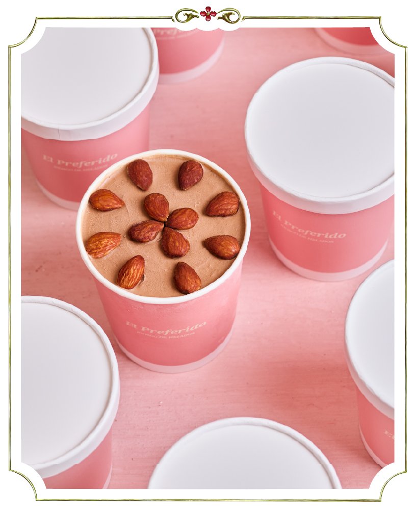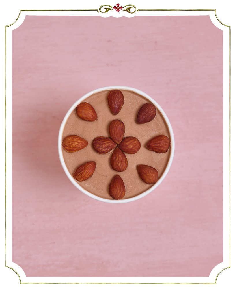 Helado de chocolate 100% cacao realizado con nibs del Ecuador y almendras enteras tostadas.