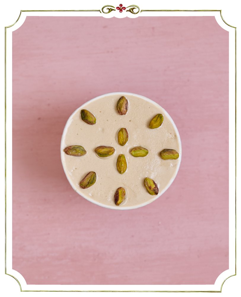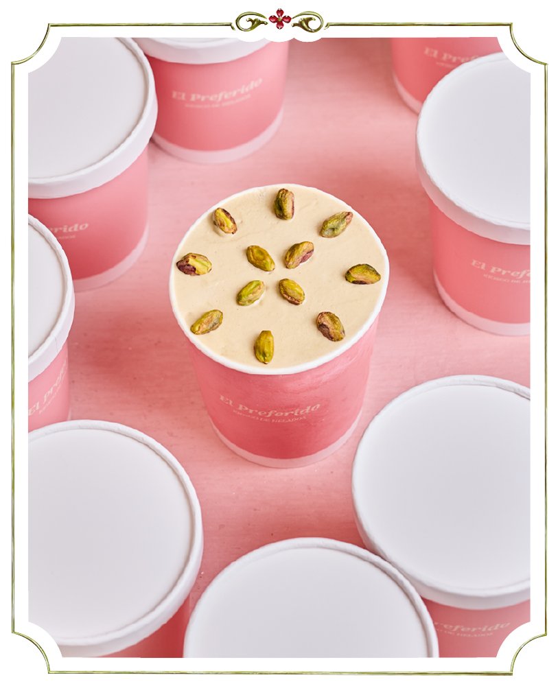 Helado de pistacho elaborado con pasta natural de pistacho de San Juan y pistachos enteros.